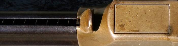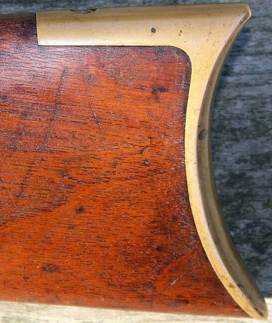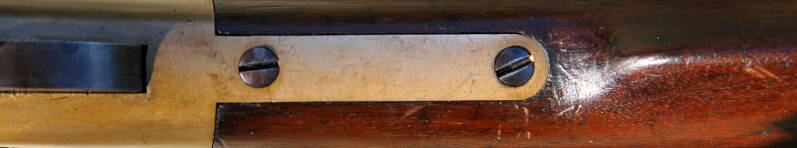 Original 24" oct bbl, nickel silver blade front sight and folding ladder rear sight with elevator bar. Barrel has a good amount of dark brown patina. Very good bore for a Henry rifle. Receiver and buttplate are in very good condition. Small "W" inspection mark used by Oliver Winchester is locasted on the lower tang behind the lever latch. The famous "Henry Bump" is very slightle visible. Sling swivel on the stock and sling loop on barrel are standard features of the late production Henry rifles. Wood is in very good condition with just minor handling dings.