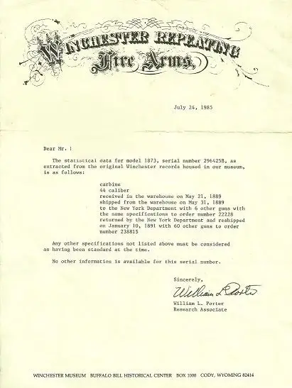 Original Winchester factory records are available for this model from the Cody Firearms Museum in Cody, Wyoming, from serial number 1 thru 34050.