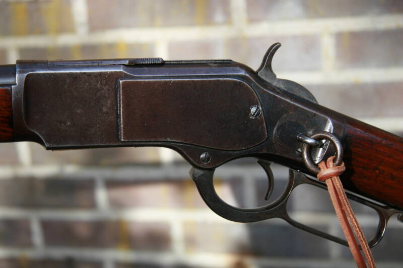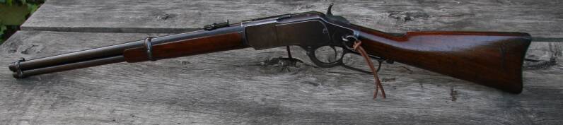Caliber 32-20. 24 inch octagon barrel with a excellent bore and full length mag tube. Correct typical Winchester blade front sight and buckhorn sporting rear sight. 'Special wood walnut stock' is in excellent condition! Rifle style buttplate with good case colors turning dark. Overall gun is in terrific shape with 90%+ bright glossy blue and vivid case colors on the hammer and lever. 100% Original and very hard to find in this condition.