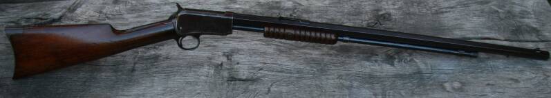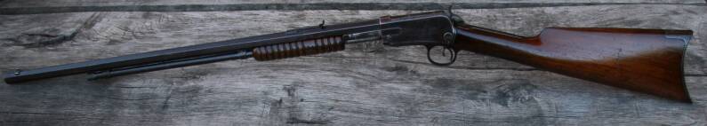 The Model 1890 was a slide-action, top-ejecting rifle with an 18-inch magazine tube under the barrel. It had a 24-inch octagonal barrel, a plain walnut stock, and an overall weight of approximately 6lbs.